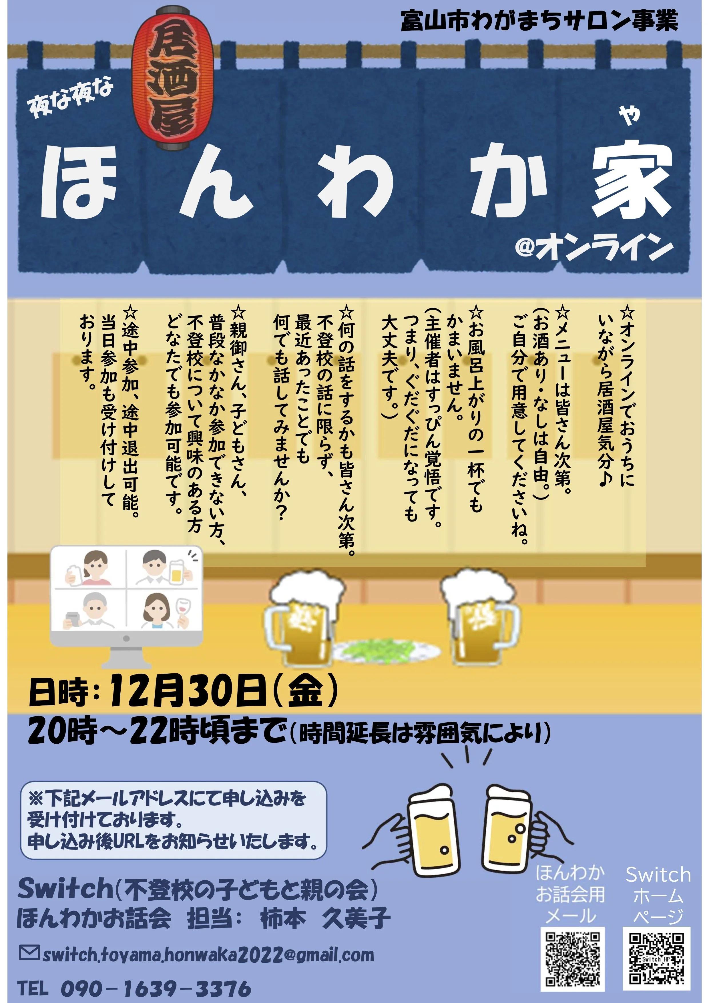 ☆12月30日(金)20時~22時(夜な夜な居酒屋ほんわか家)