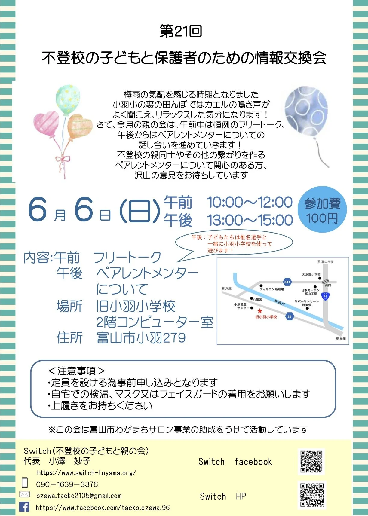 会場はSwitchの拠点となる旧小羽小学校の木造校舎(2階コンピューター室)です。