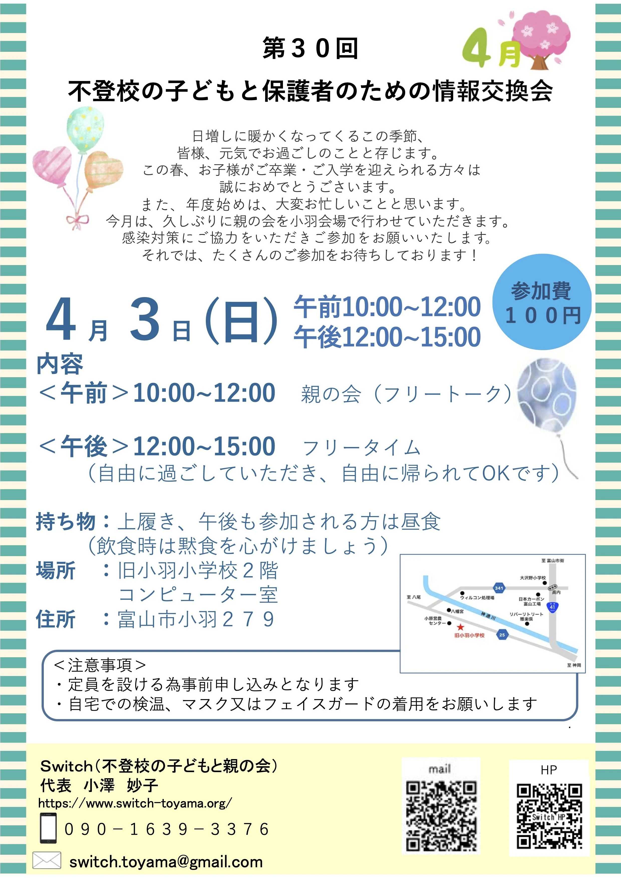 10:00〜12:00 親の会「フリートーク」※今回は不登校を考える会はお休みです。
