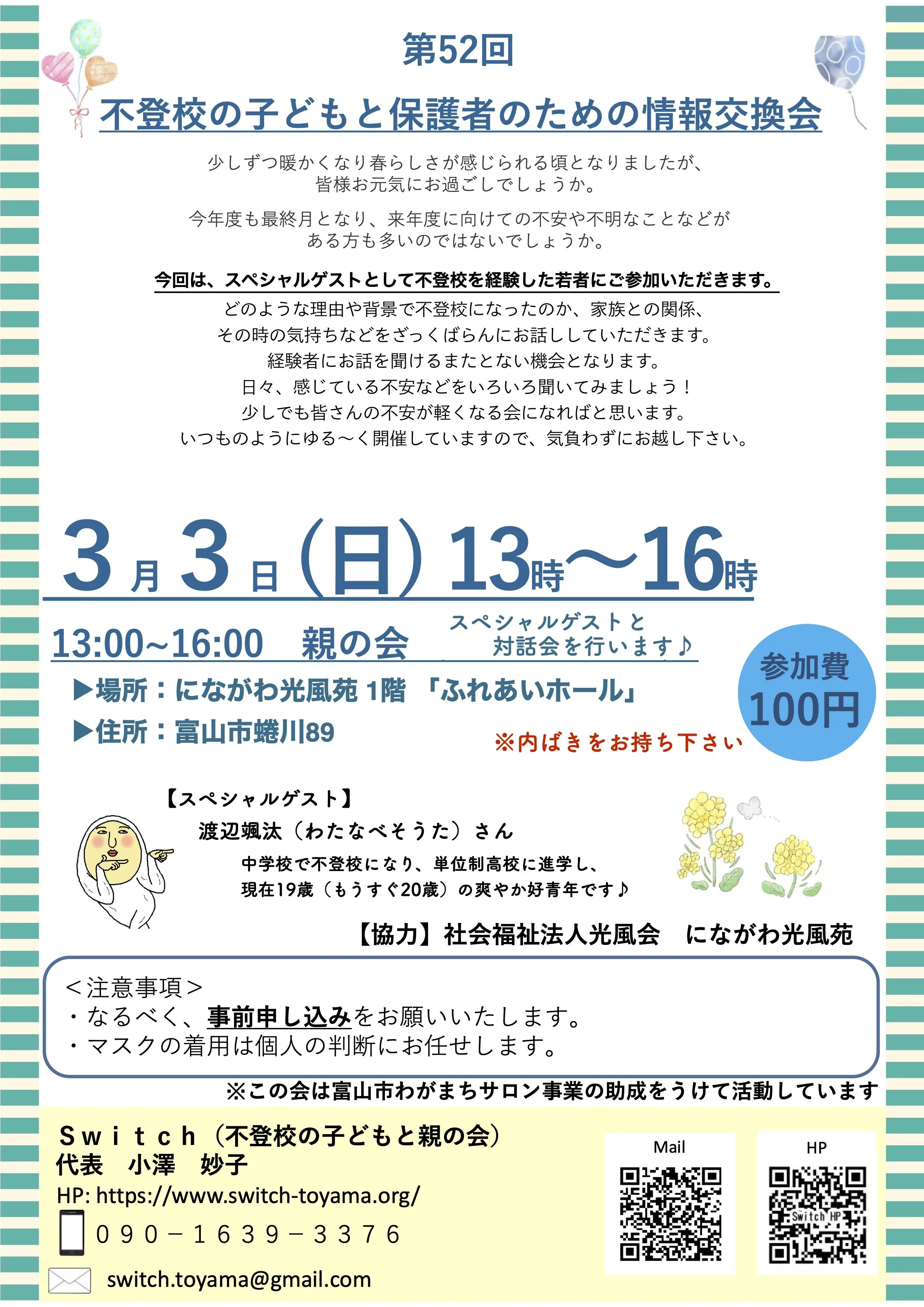 ゲストは不登校を経験した青年の渡辺颯汰(わたなべそうた)さんです。