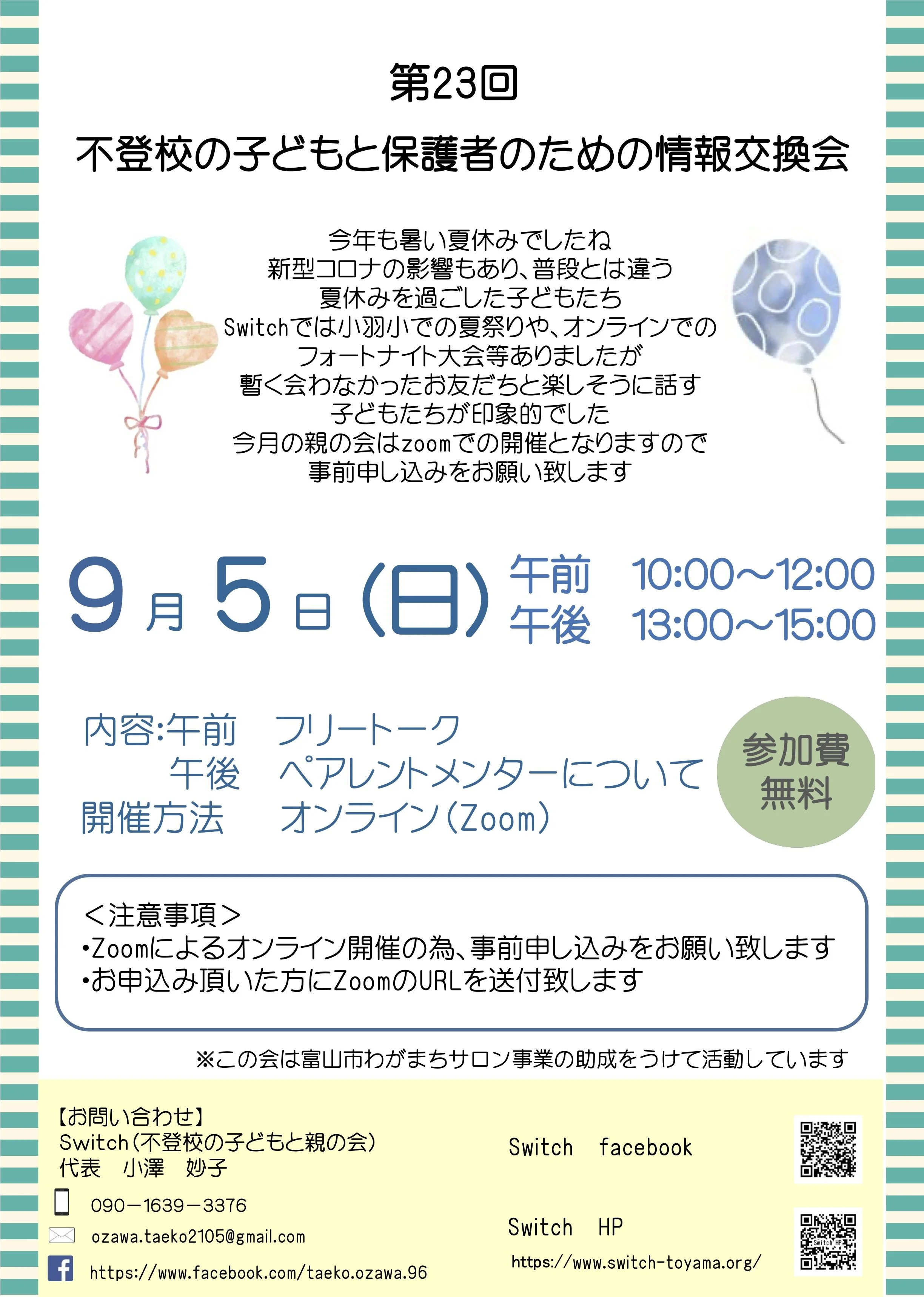 夏休み明けで子どもさんも不安定な時期を迎えていると思います。皆さんとのんびりとお話しする中で共感や気づきが得られればと思います。