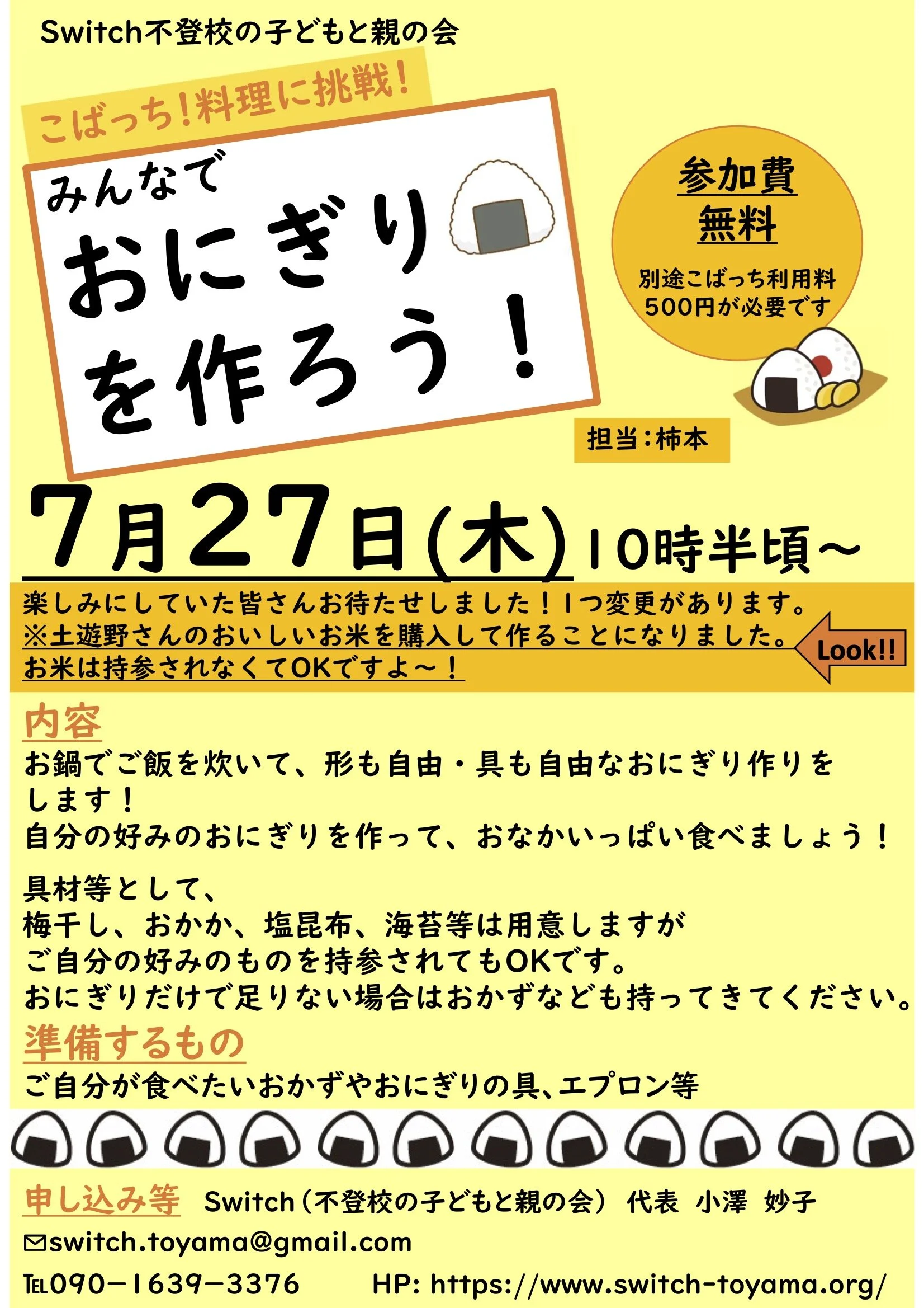▶︎持ち物:おにぎりに入れたい具材、エプロン、タオル等