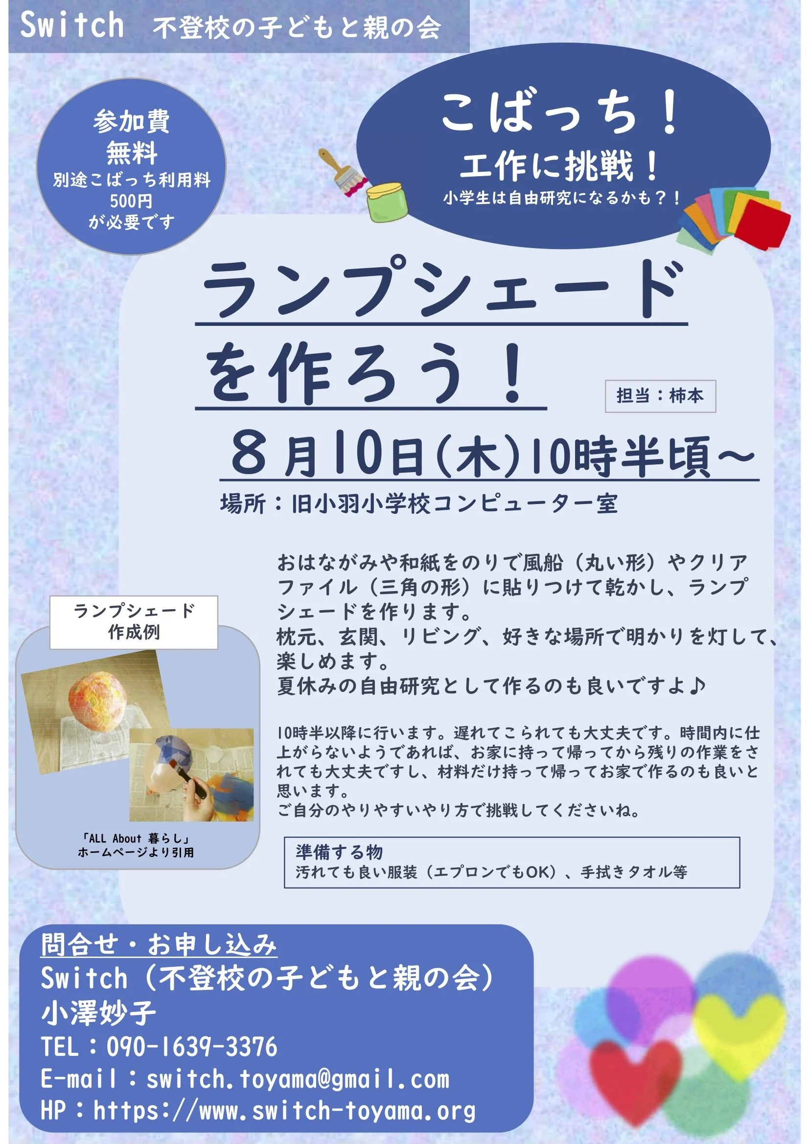 今回のこばっちでは、Switchママさんによる夏休み企画としてランプシェード作りを行います。