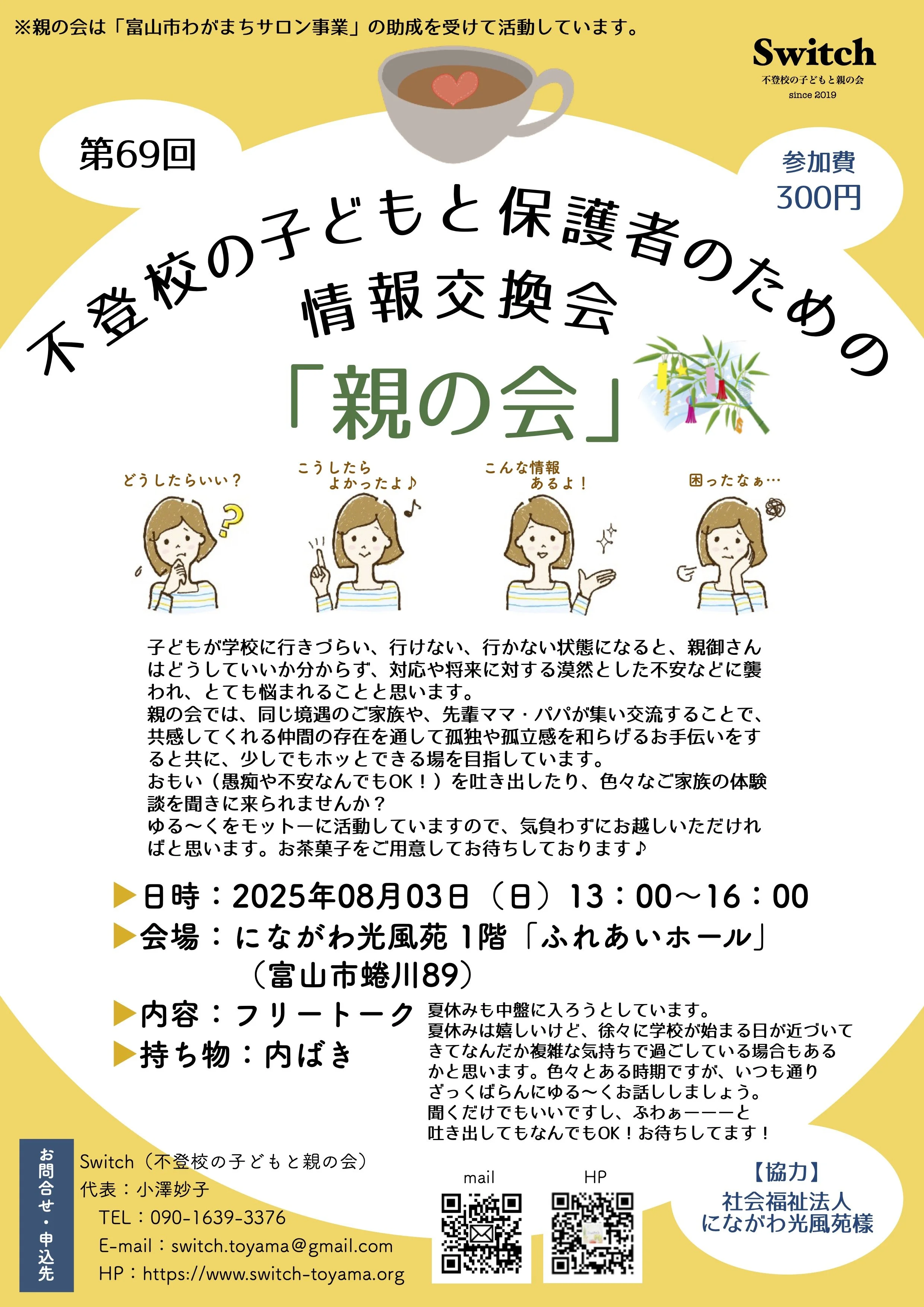 ※親の会は「富山市わがまちサロン事業」の補助を受けて活動しています。