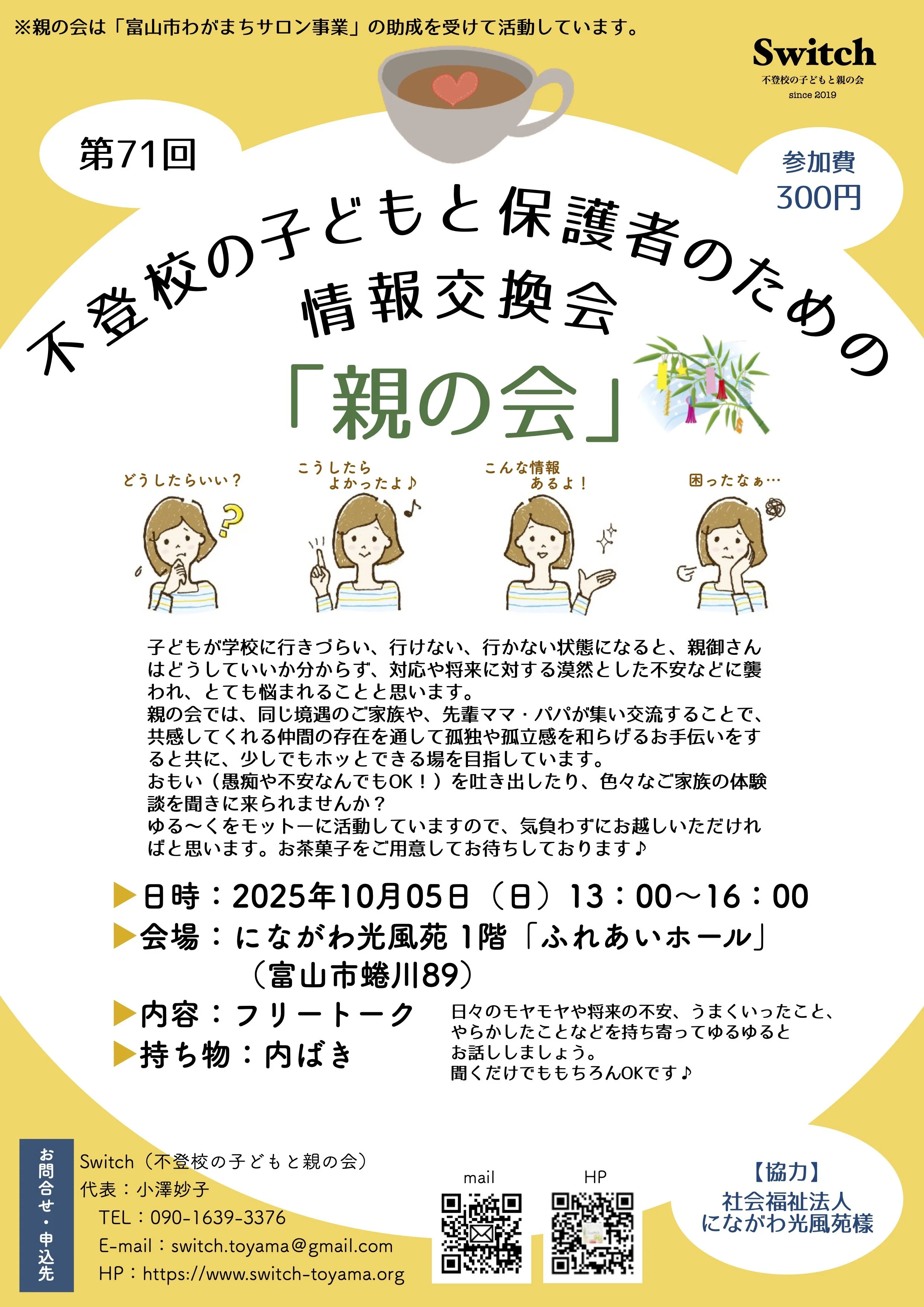 ※親の会は「富山市わがまちサロン事業」の補助を受けて活動しています。