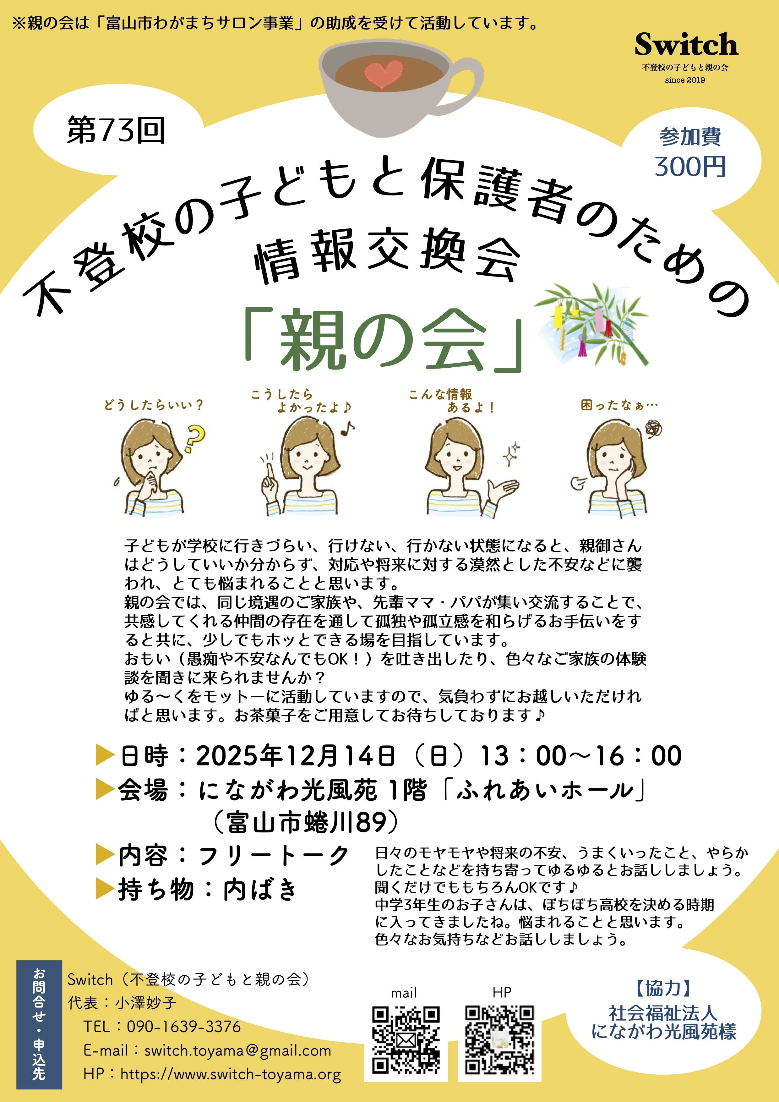 ※親の会は「富山市わがまちサロン事業」の補助を受けて活動しています。