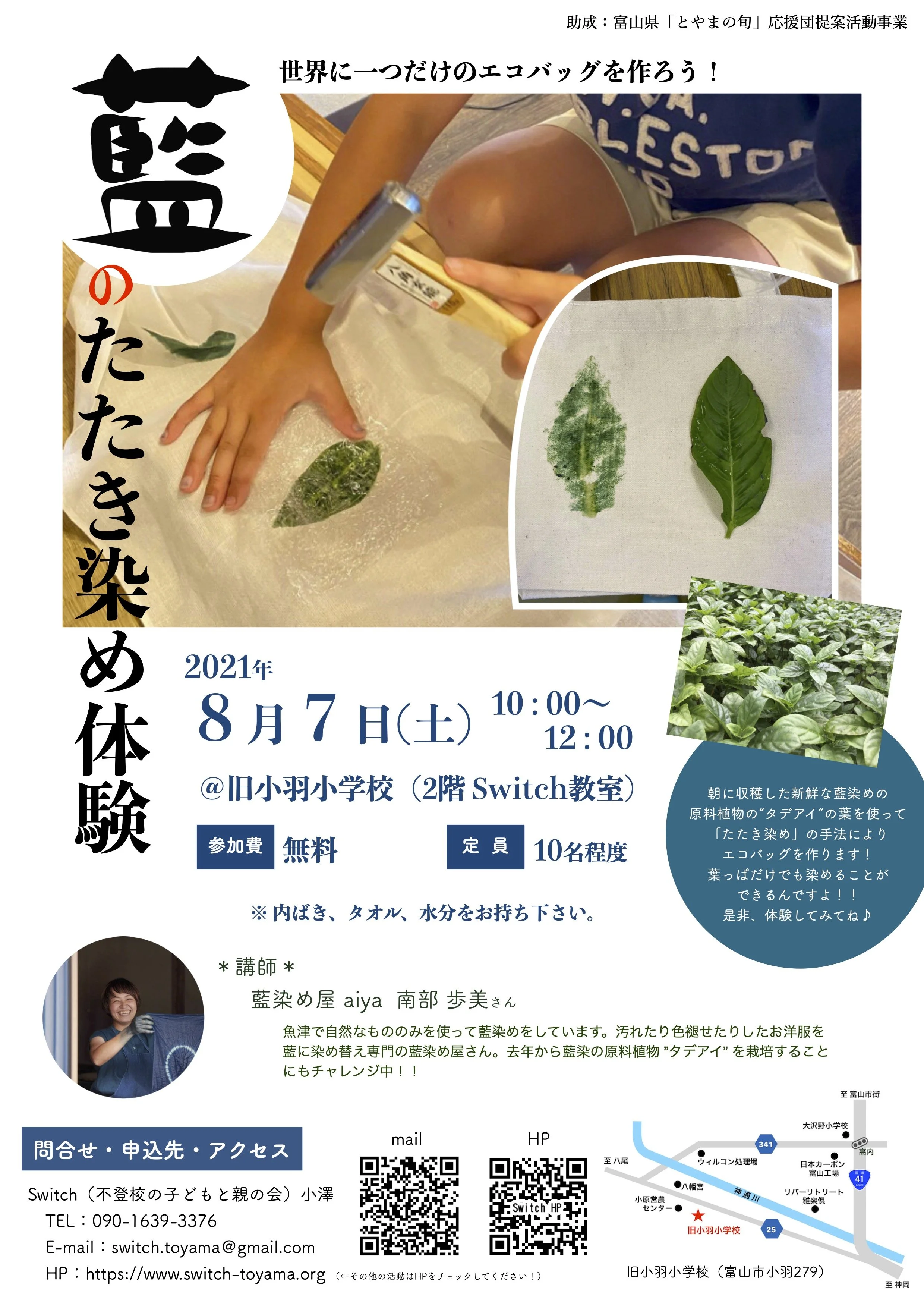 ご縁が繋がって魚津で藍染めをされている藍染め屋aiyaの南部さんを講師にお迎えし、藍染体験を開催します!